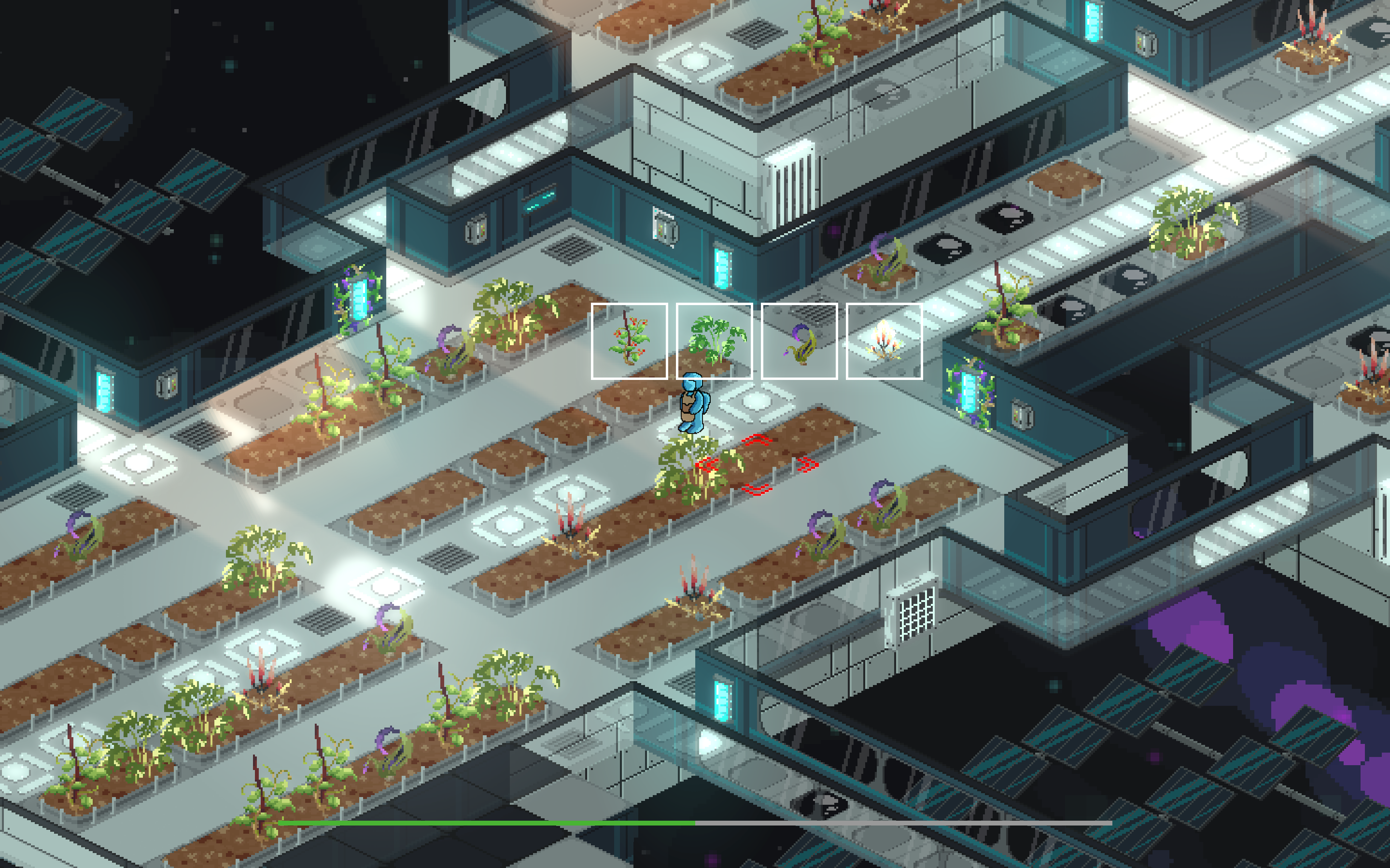 A very lovely, cozy, isometric, sci-fi, cottage-core, planting game!